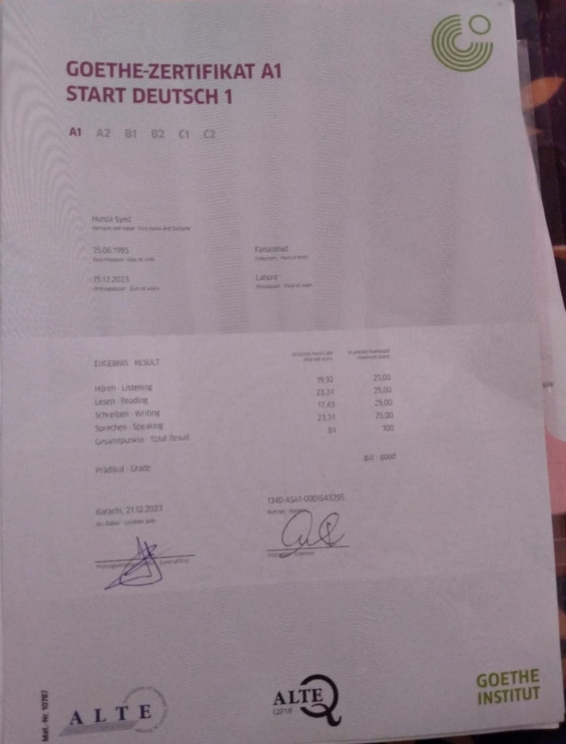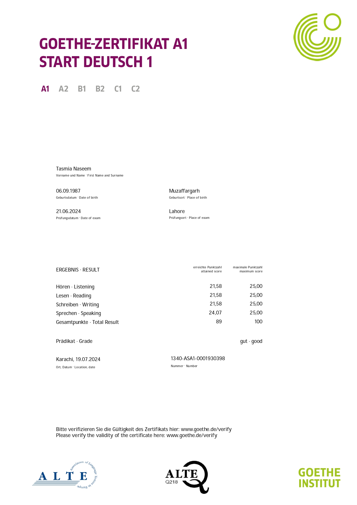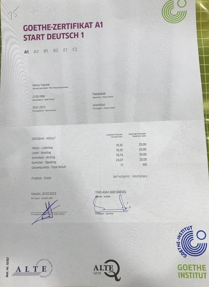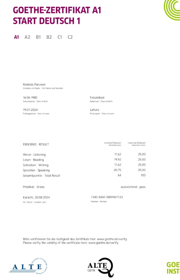 German Course Certificates
